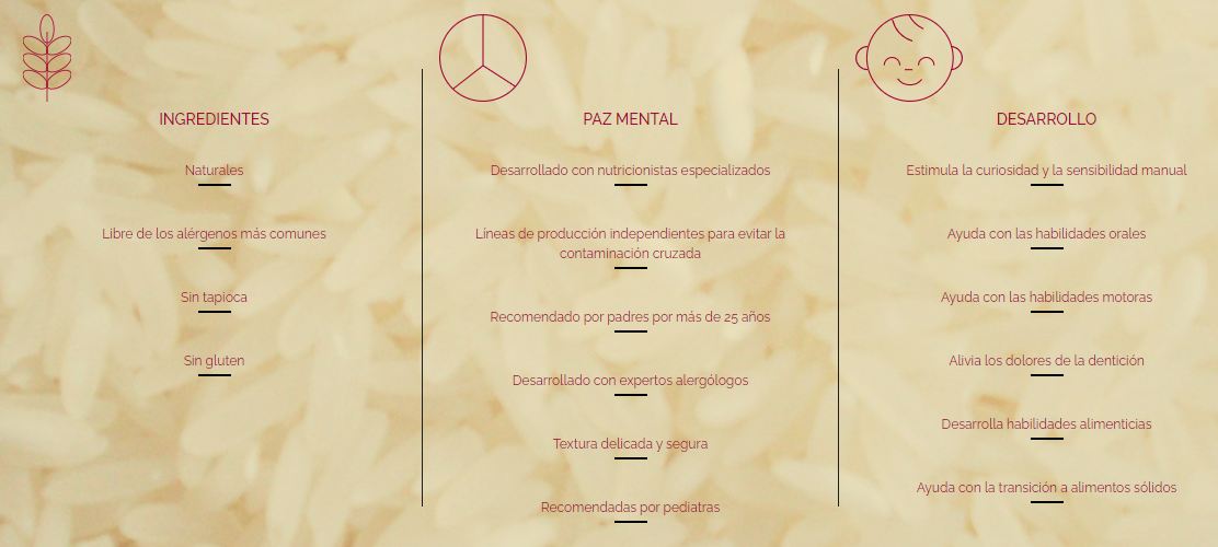 Hechas de arroz horneado, libres de gluten, huevo y maní. Ayudan con los dolores de la dentición. No tienen, preservantes, GMO, colorantes ni sabores artificiales, encuentralos en nuestras tiendas de Coyhaique.